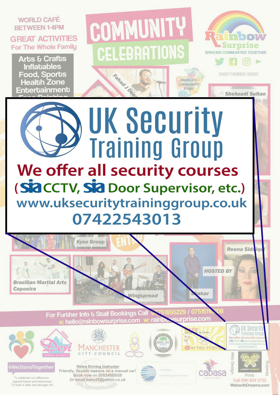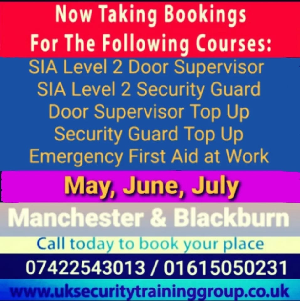 Gallery Upcoming Courses UK Security Jobs UK Security Event Coverage Get In TouchIf you have any questions, do not hesitate to contact us for further information on: +44 (0)161 505 0231 / +44 (0)742 254 3013 info@uksecuritygroup.com Stay Connected FollowFollowFollow Home| Services| Book A Course| Recruitment| Contact Us | Gallery | Other Languages